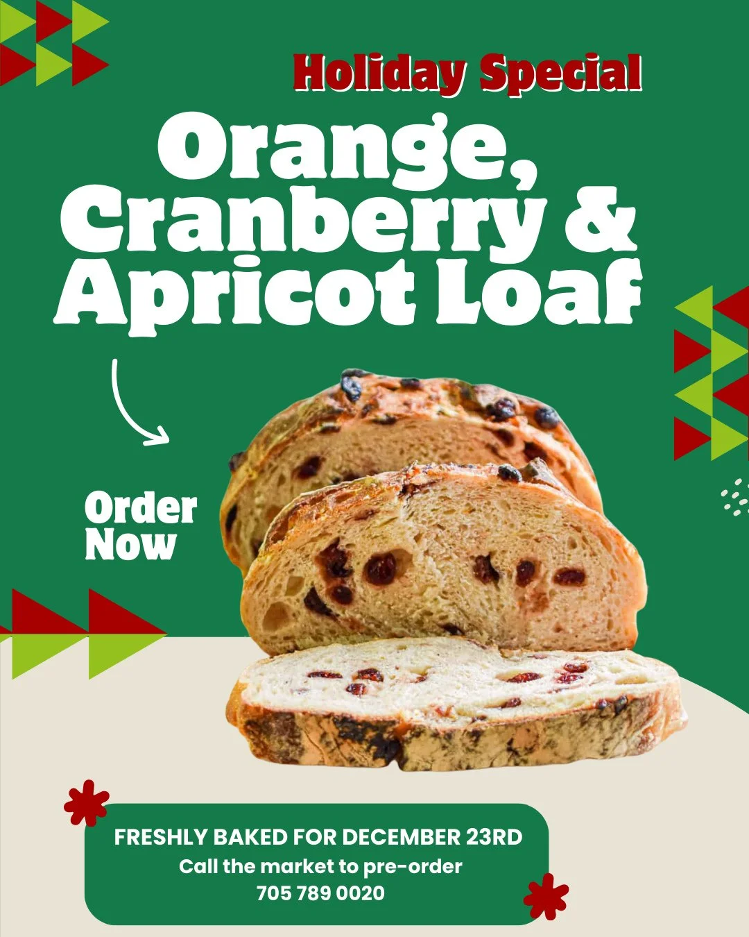 Bright, zesty, and naturally sweet—this loaf combines tart dried cranberries with fragrant orange zest for a refreshing, fruity twist on traditional sourdough. Pairs beautifully with butter, soft cheeses, or your morning tea.